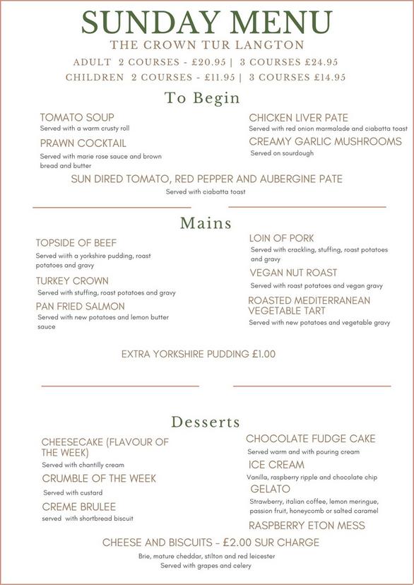Our Sunday menu is a set 2 course minimum